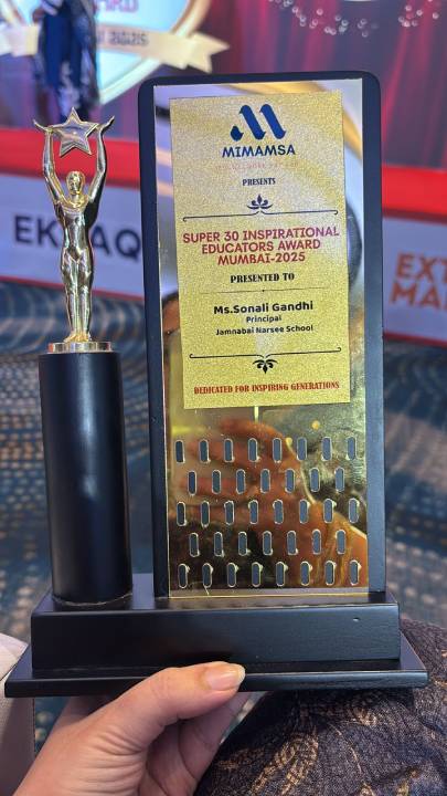 Jamnabai Narsee School was honoured with an award in two distinguished categories - Excellence in Inclusivity and Global Citizenship and Excellence in Parent and Community Partnership. Vice Principal Smt. Sheetal Jain received the award on behalf of the school at the Free Press Journal House.