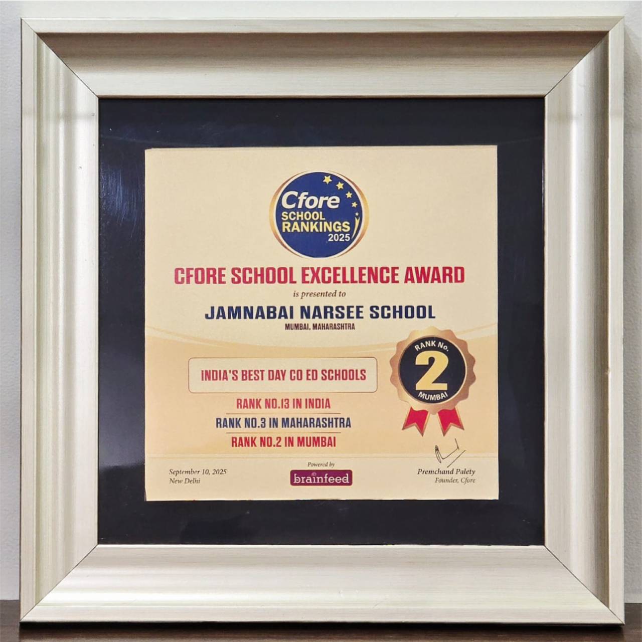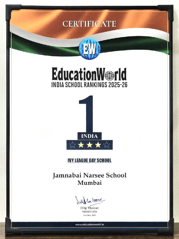 Jamnabai Narsee School has been Ranked No. 1 in the EducationWorld India School Rankings 2025-26 & has been awarded the distinguished Ivy League status - a rare accolade reserved for the most exceptional schools among over 4,500 across India.